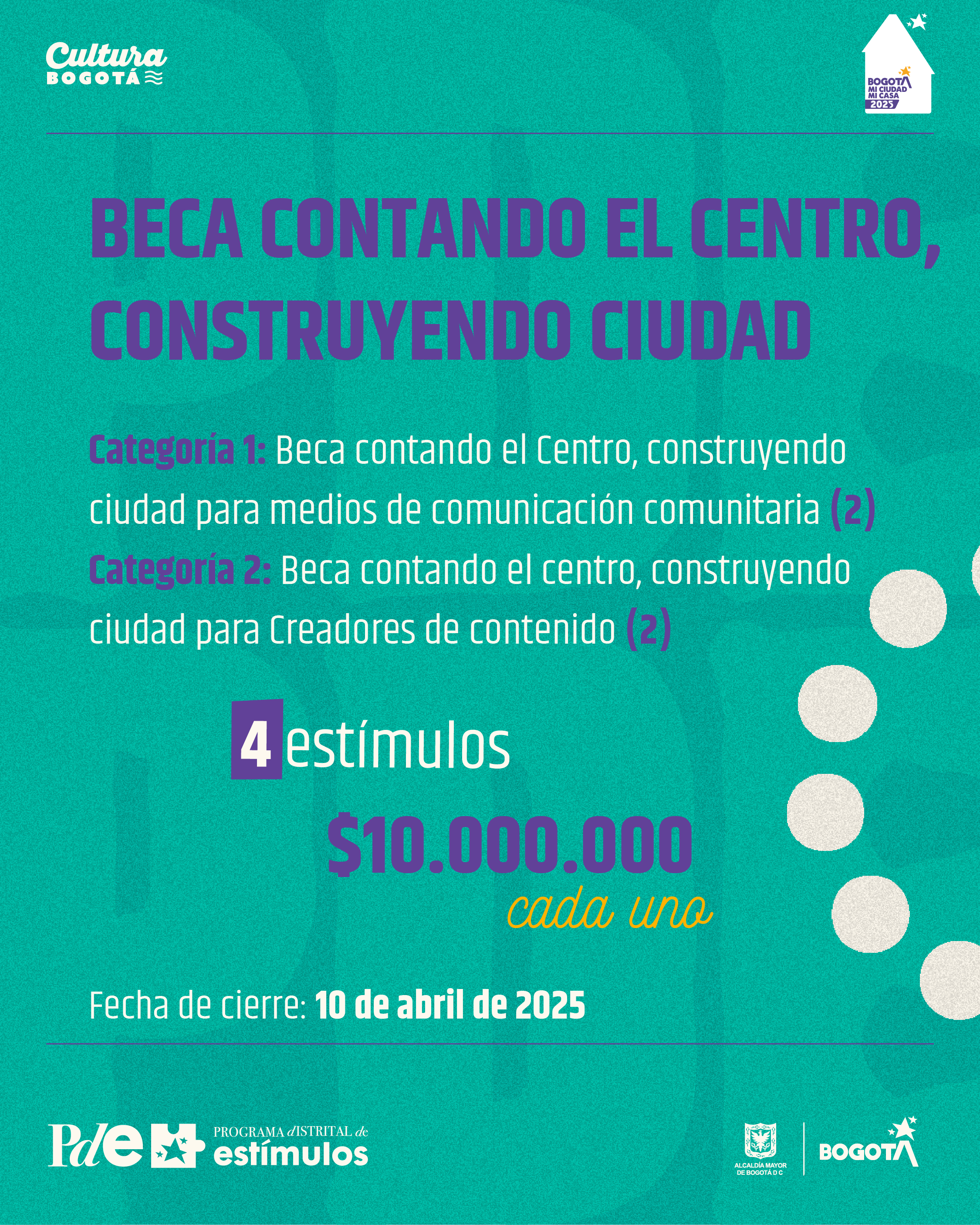 La convocatoria “Beca contando el centro, construyendo ciudad” de la Fundación Gilberto Alzate Avendaño - FUGA busca fortalecer los procesos de promoción y divulgación de los emprendimientos culturales y creativos de las localidades de Santa Fe, Los Mártires y La Candelaria, a través de medios de comunicación alternativos y de creadores de contenido, generando un trabajo colaborativo entre estos actores y los agentes del ecosistema de la economía cultural y creativa del centro de Bogotá.